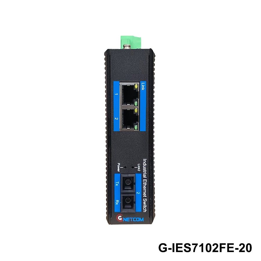 G-IES7102FE-20A | 10/100Base-TX (PoE) to 100Base-FX, Single-Mode (Tx1310nm/Rx1550), Single,SC 20km |