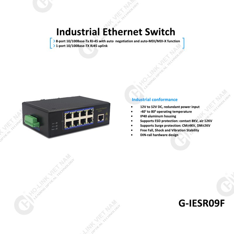 G-IESR09F | 8-Port RJ45 +1Port Uplink Industrial Switch,100Mbps |